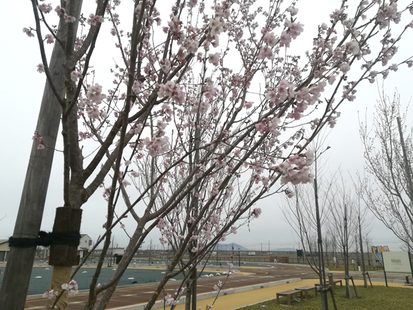 ウエルネスタウンの周りの桜もいよいよ開花してきました。現地の桜の様子です。