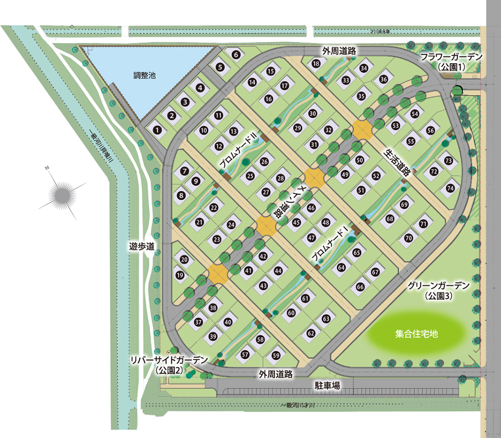 ●名称/ウエルネスタウンみつけ●事業主/見附市●所在地/見附市美里町●開発面積/45,000㎡●土地利用/公園緑地用地6,862㎡(2,076坪)●住宅用地21,424㎡(6,480坪)●戸建住宅×74区画、集合住宅×1区画【戸建住宅用地】197.00㎡(59.59坪)~389.63㎡(117.86坪)平均262.48㎡(79坪)【集合住宅用地】2,000㎡(605坪)【戸建住宅用地販売価格】10,683千円~24,397千円 最多価格帯1,700万円台×14区画【戸建住宅用地販売単価】1坪あたり17.9万円~22.0万円●地目/宅地●用途地域/第一種中高層住居専用地域●建ぺい率60%容積率200%●道路幅員6m~14m(一部歩道あり)●ライフライン/上下水道、都市ガス、電力線、通信線(光ファイバーのみ)●消雪パイプ/すべての道路に設置(歩道は除く)●消雪組合/設立済み●地区計画/ウエルネスタウン地区地区計画●住宅設計ガイドライン/有り●取引態様/売主:見附市、販売代理:公益社団法人新潟県宅地建物取引業協会三条支部見附地区